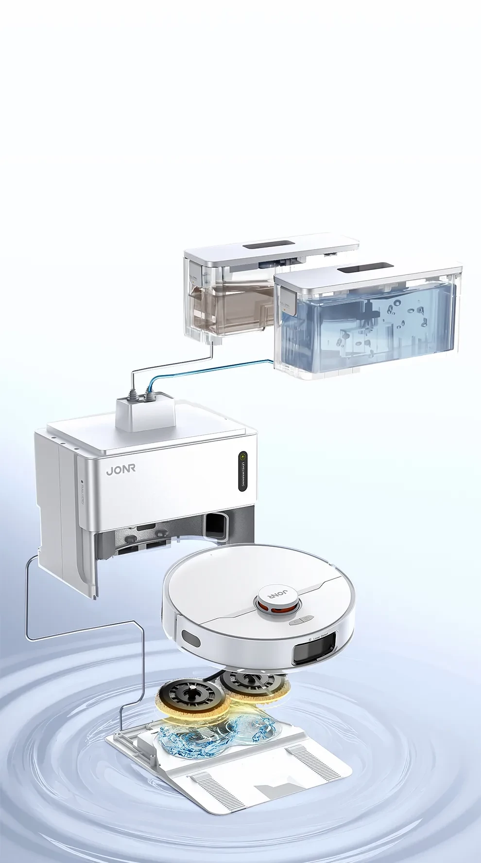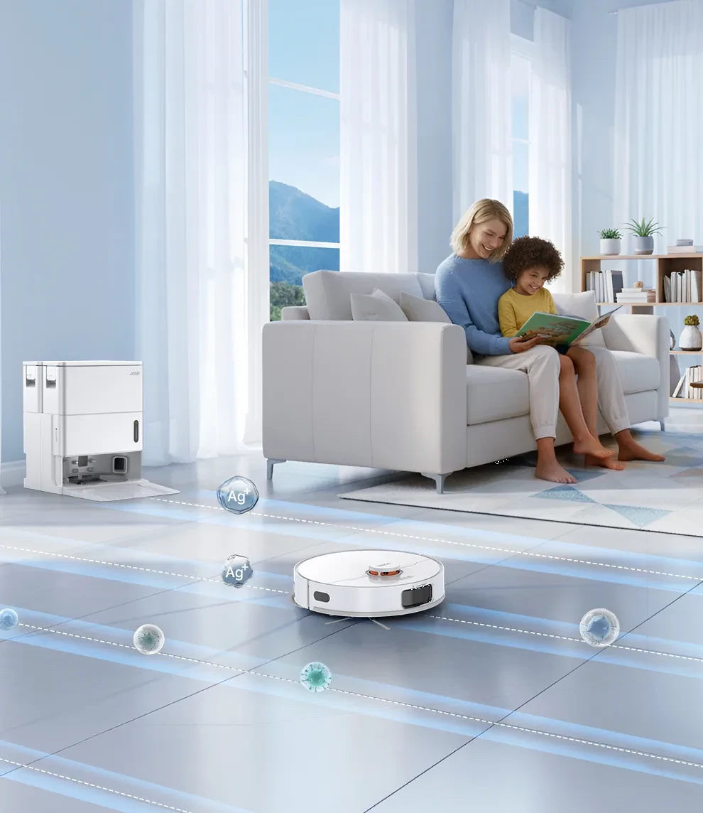 A robot visszatér az állomásra, hogy öntisztítsa és meleg levegővel megszárítsa a felmosókat. 15 másodperc alatt üríti a port egy 3 literes, nagy kapacitású zsákba, így akár 60 napig nem kell a porral foglalkoznia. Aktívan szárítja a felmosókat, hogy megakadályozza a dohos szagok kialakulását.
