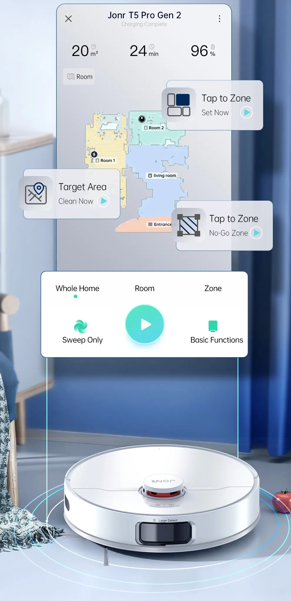 A LiDAR navigáció és a fejlett SLAM algoritmus segítségével gyorsan elkészíti a pontos otthoni térképet, és intelligensen megtervezi a tisztítási útvonalat a teljes lefedettség érdekében, ismétlések nélkül.