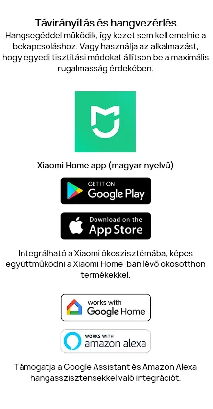 | Speciális tulajdonságok | Éltisztítás, intelligens felmosóemelés, LiDAR navigáció, egyidejű porszívózás és felmosás, intelligens felmosóemelés, ultrahangos szőnyegfelismerés |
