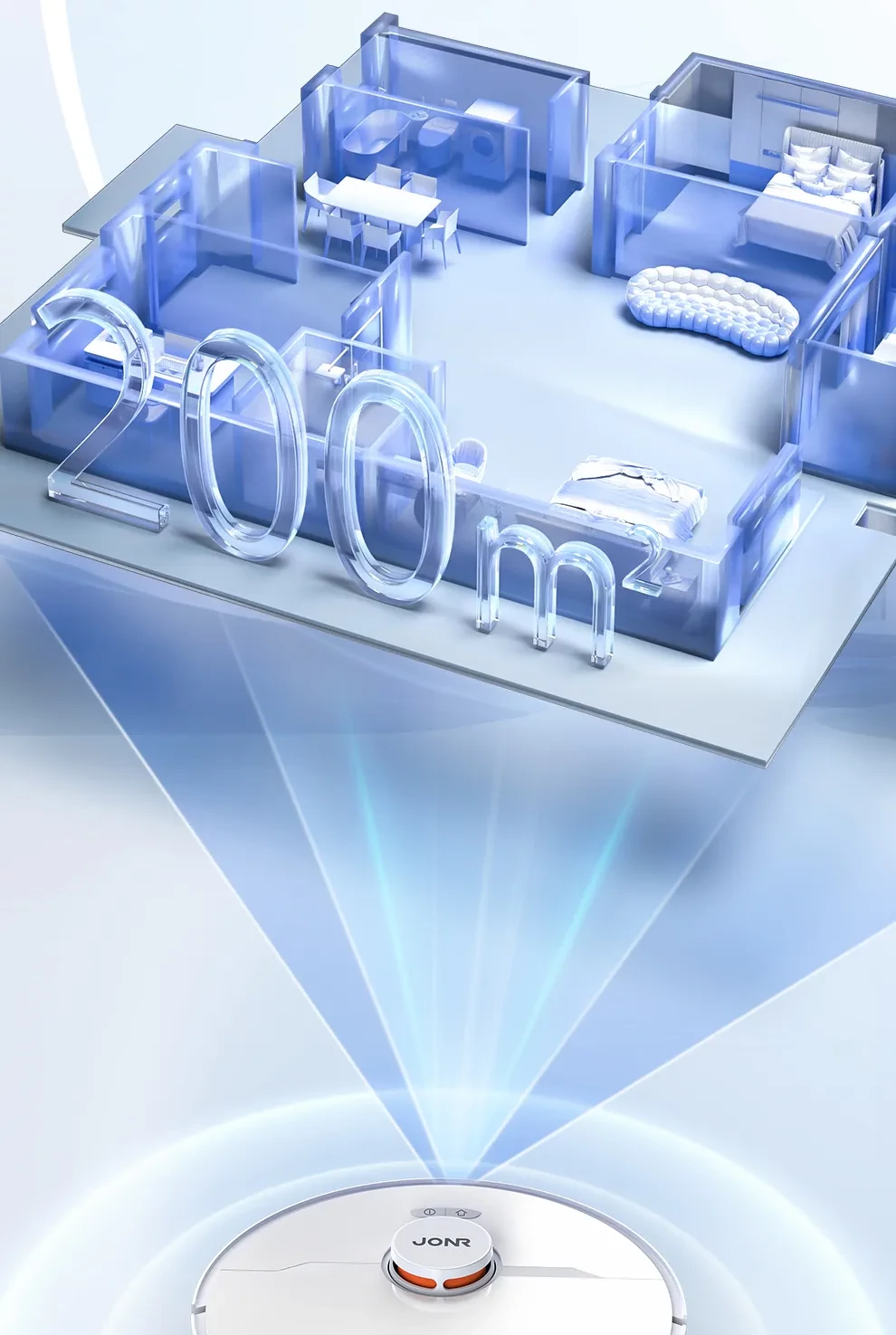 Teljes otthoni lefedettség Egyetlen feltöltéssel akár 200 m2-t is megtisztít. 150 perc megszakítás nélküli tisztítás nagy otthonokban.