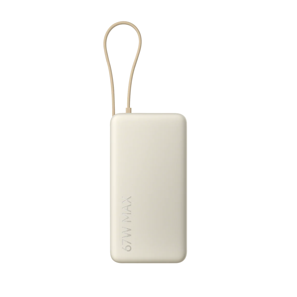 A beépített USB-C kábel mindig kéznél van, és a tartós, rugalmas TPU anyagának köszönhetően zsinórként is funkcionál. A power bank széleskörűen kompatibilis Xiaomi, iPhone, Samsung és más Android telefonokkal, tabletekkel és laptopokkal, sőt alacsony áramú töltést is támogat Bluetooth fülhallgatókhoz és okosórákhoz.