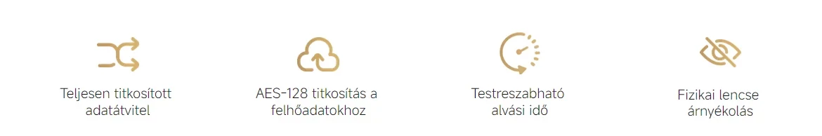 Teljesen titkosított adatátvitel, AES-128 titkosítás a felhőadatokhoz és testreszabható alvási idő.