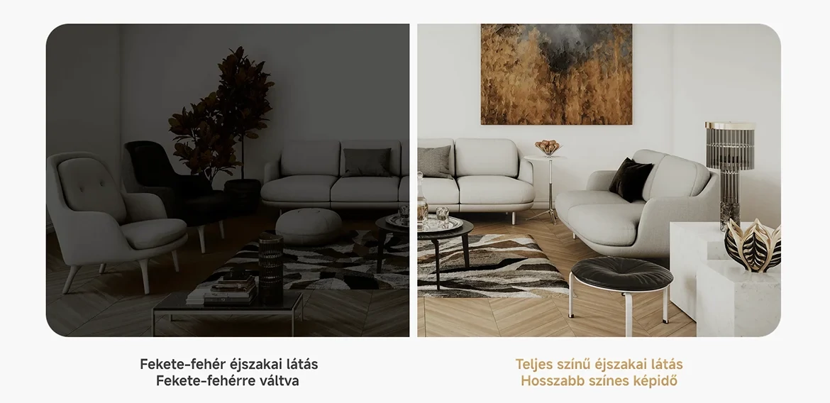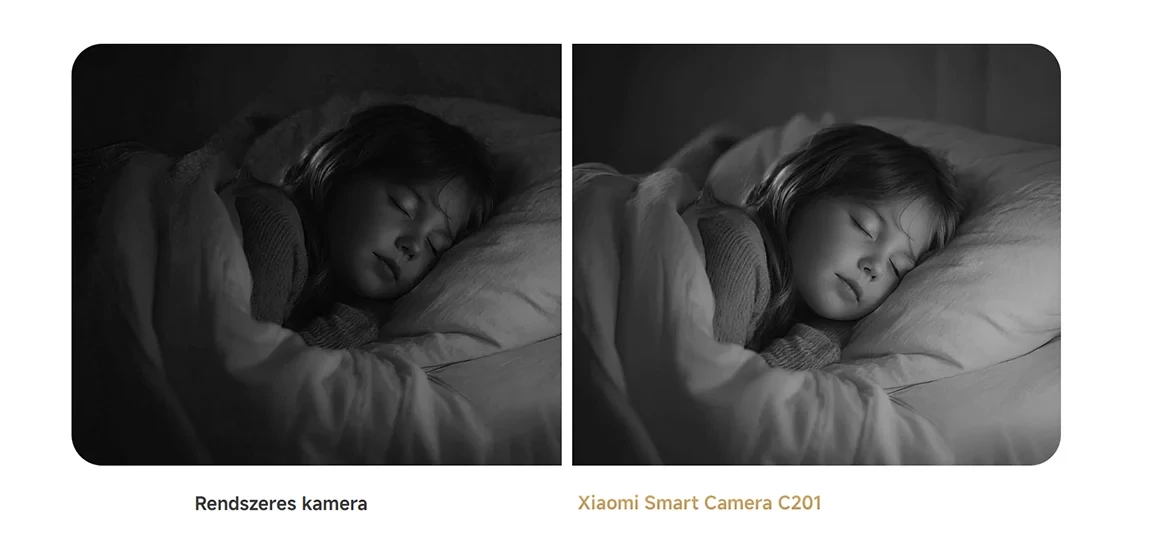 A kamera hat beépített infravörös megvilágítással rendelkezik, és sötét éjszakákon is tiszta képeket készíthet anélkül, hogy piros fényt állítana elő, vagy megzavarná a család alvását.