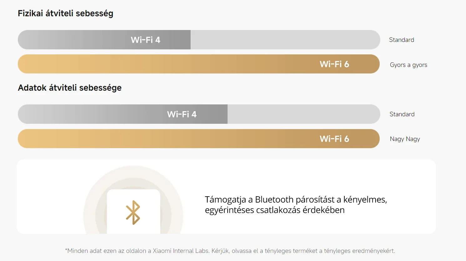 *Eltérő rendelkezés hiányában az ezen az oldalon található összes adat a Xiaomi Internal Labs-től származik. A tényleges adatok a környezeti tényezőktől függően változhatnak. Kérjük, tekintse meg a tényleges adatokat.