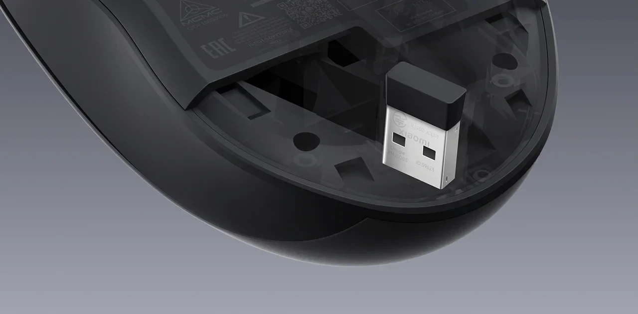 Az egér elemtartó rekeszében található a hordozhatóság és az elvesztésének esélyének csökkentése érdekében.